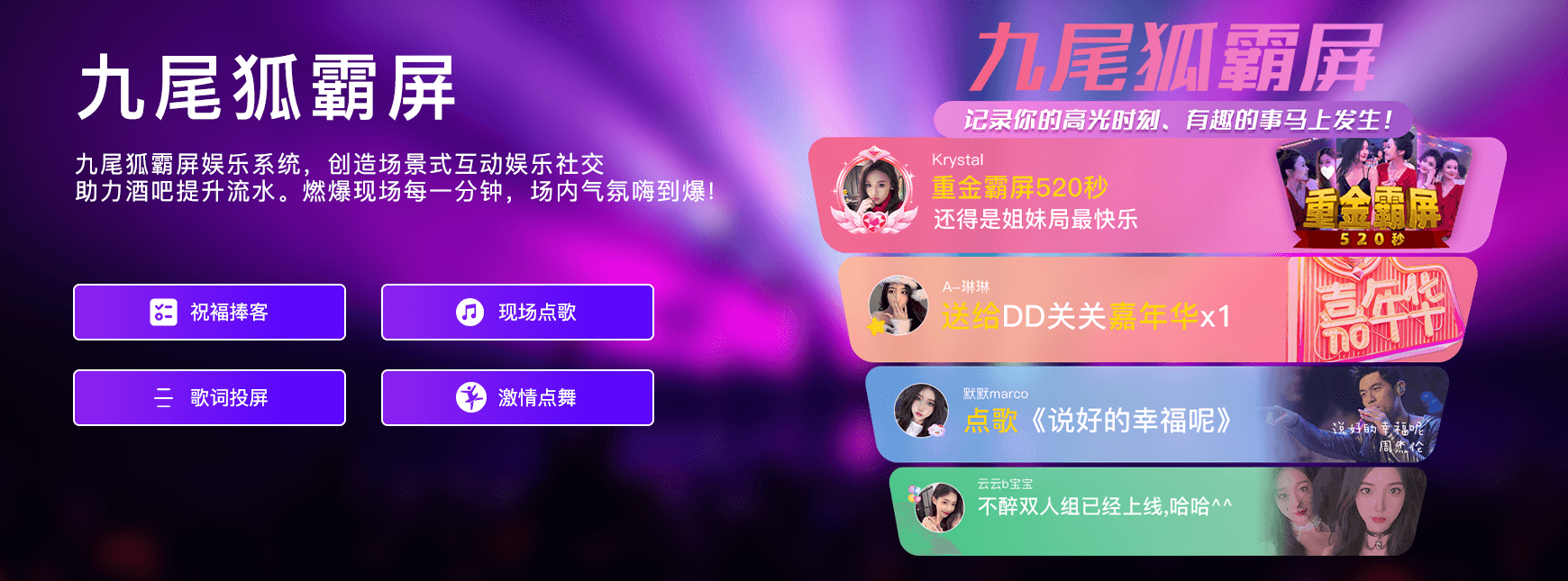九尾狐投入数百万资金支持,提供各种礼品,场方无需投入任何成本,我们将全程负责奖品和全方位运营,场方只需提供大屏。